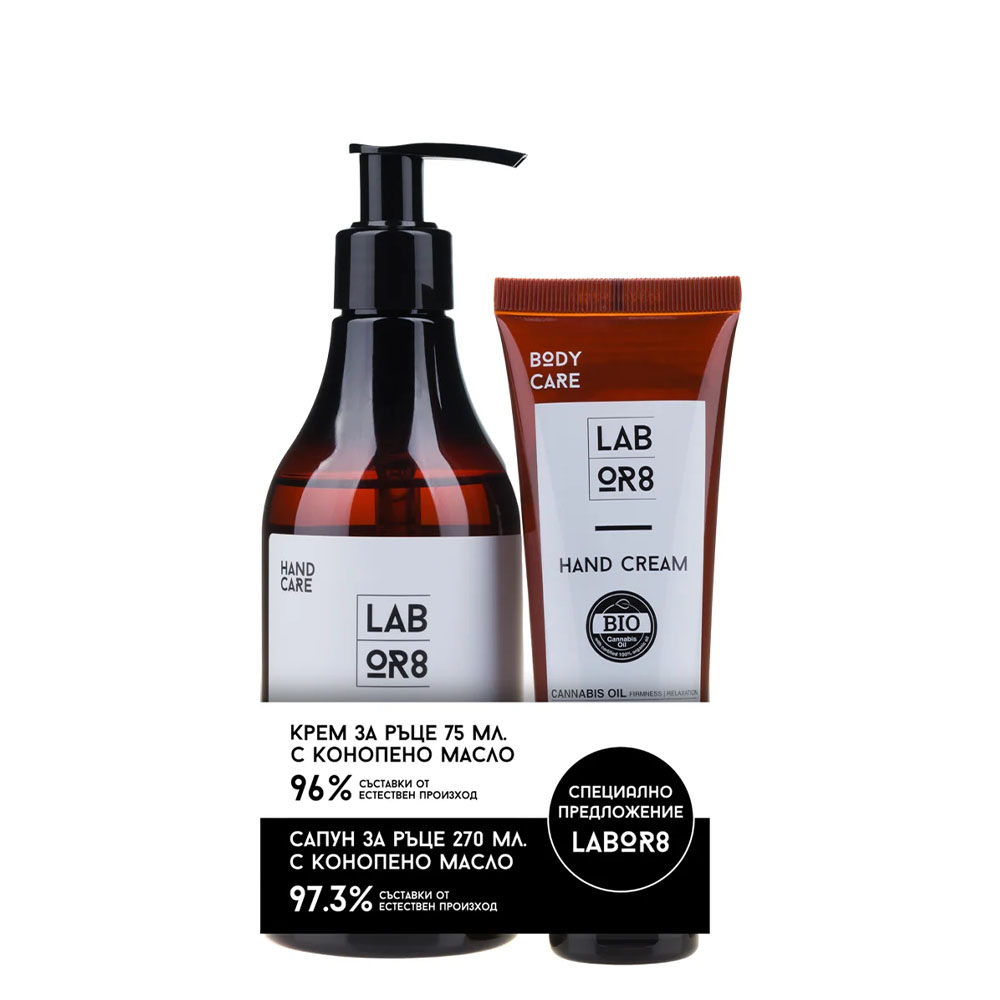 Кремът за ръце с конопено масло от Labor8 Hemp прави кожата на ръцете ви по-устойчива, като им придава усещане за овлажняване. Ръцете ви стават меки и кадифени на допир. Студенопресованото и нерафинирано конопено масло отскоро се използва за козметични цели, но бързо си набира верни почитатели. Богато е на протеини, аминокиселини, минерали и витамини (A, D, E и K). До 98.8% от съставките на продуктите са с естествен произход. Те не съдържат силни детергенти, изкуствени оцветители, минерални масла и други маслени деривати. Съдържат студенопресовано, нерафинирано конопено масло, богато на протеини, аминокиселини, минерали и витамини (A, D, E, K)