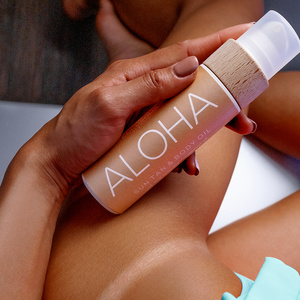 ALOHA е натурален продукт, който ускорява натрупването на бърз, равномерен, наситен и дълготраен тен на плажа и в солариума. Същевременно задържа влагата в кожата и я прави по-мека, гладка и еластична. С нежен тропически аромат на кокос.