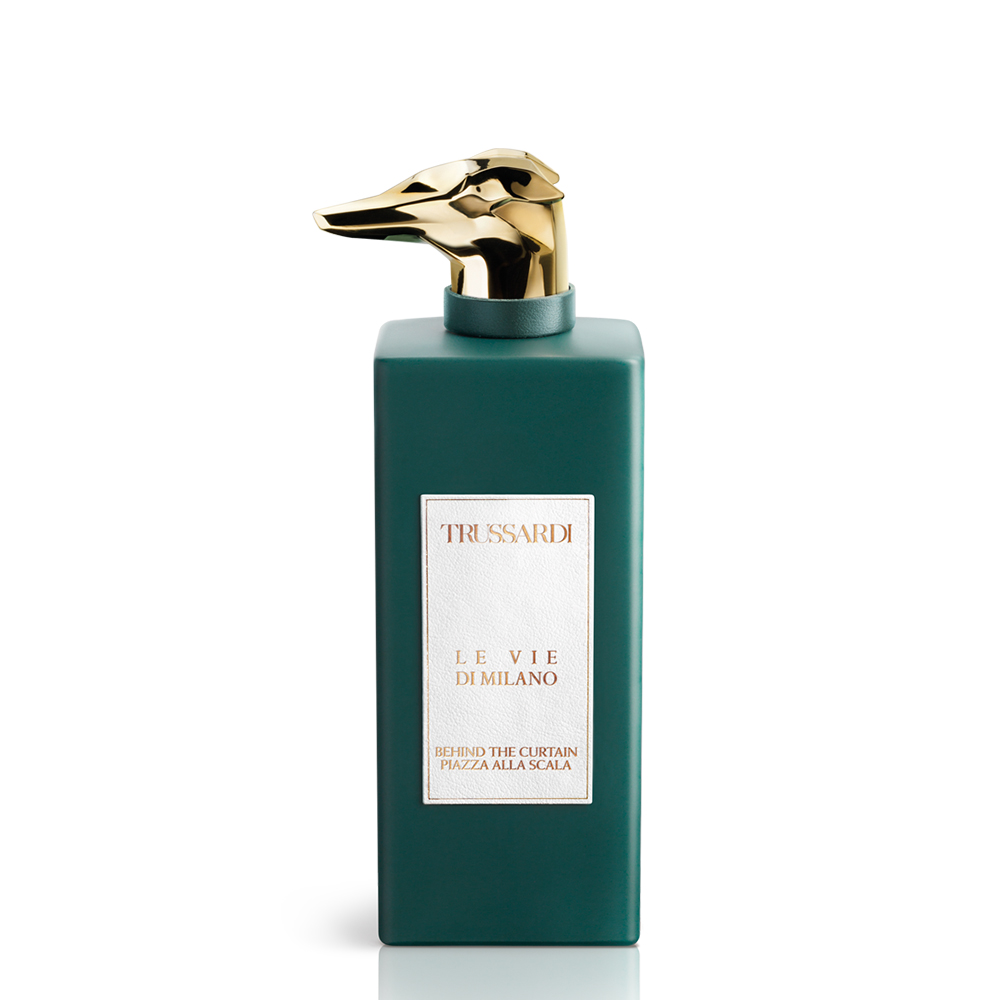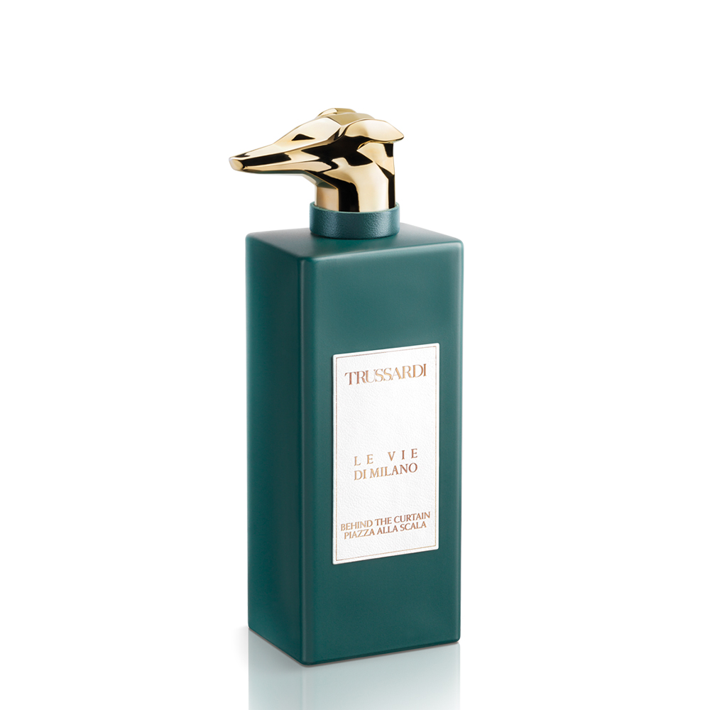 Емблематичните унисекс аромати от линията Le Vie di Milano на Trussardi, разказват за пътуване, което започва далеч и ви кара да преживеете уникалната атмосфера по улиците на Милано. Прелюдия от бергамот, шафран и карамфил отваря обонятелната партитура зад завесата на PIAZZA ALLA SCALA. Средните нотки на хвойна и жасмин, прекрасно смесени с нотки на лабданум и кожа, избледняват в дълбок водовъртеж от сандалово дърво и пачули. ! Сатененият стъклен флакон е в петролено-зелени оттенъци, със скулптурна златиста метална капачка, която точно възпроизвежда миниатюрната версия на главата на италианския Левриеро - хрътката на Trussardi.