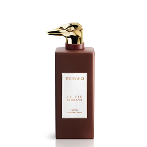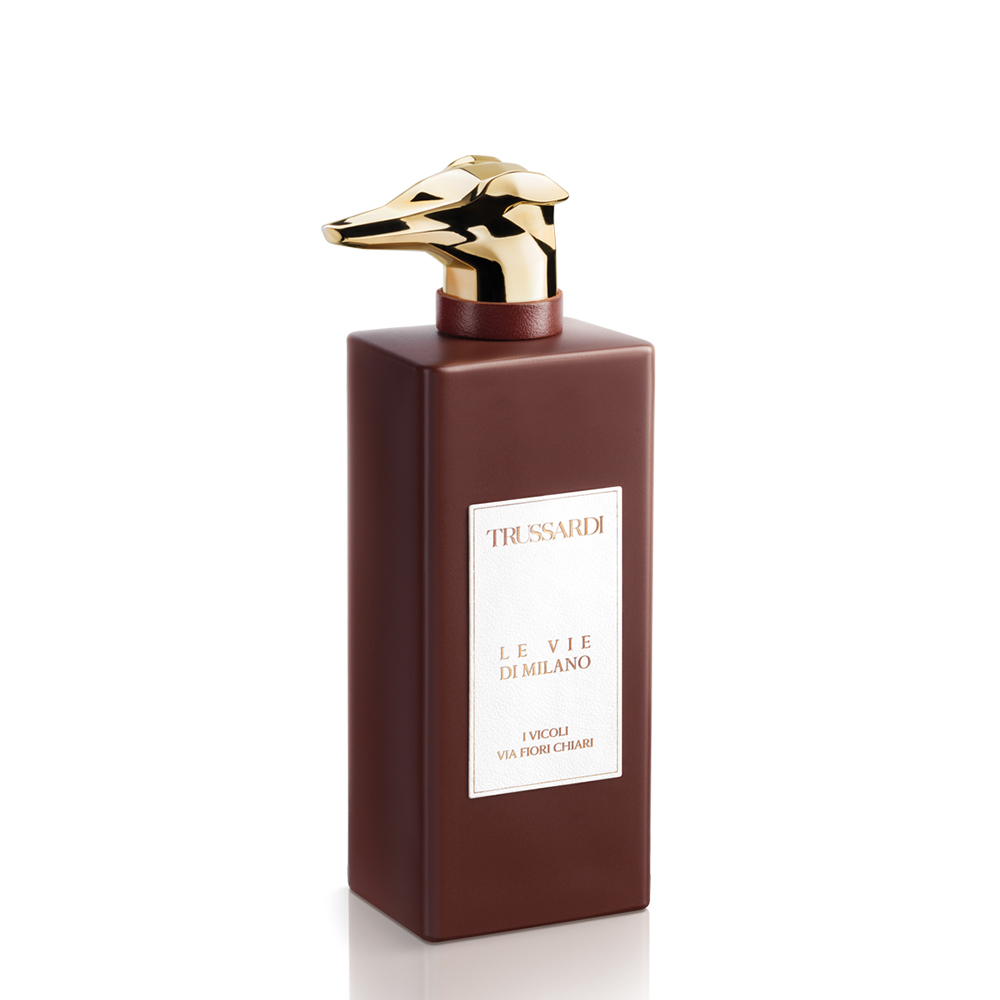 Емблематичните унисекс аромати от линията Le Vie di Milano на Trussardi, разказват за пътуване, което започва далеч и ви кара да преживеете уникалната атмосфера по улиците на Милано. Анасон, кардамон и лимон ознаменуват артистичната страна на квартал Брера, когато ароматът Via Fiori Chiari се разгръща. Интензивното пачули и черен пипер разкриват целия творчески характер на този аромат, оставяйки място за пищните базови нотки на ванилия и ликьор. Сатененият стъклен флакон се предлага в тъмен бургундски нюанс със скулптурна златна метална капачка, която точно възпроизвежда миниатюрната версия на главата на италианския Левриеро, хрътката Trussardi.