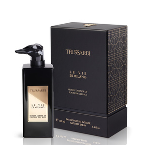Емблематичните унисекс аромати от линията Le Vie di Milano на Trussardi, разказват за пътуване, което започва далеч и ви кара да преживеете уникалната атмосфера по улиците на Милано. Hidden Corner of Fontana Del Baci обгръща с нотки на стиракс и роза, създаващи великолепен сърдечен акорд. Елегантни опушени нюанси на ветивер, смесени с уютни кехлибарени нотки и меки балсами за вечна съблазън.