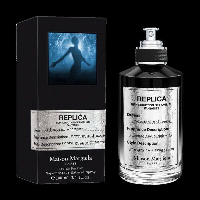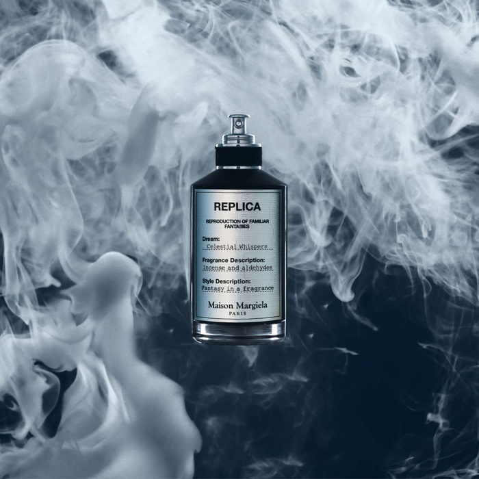 Шанс да излезете от напрежението на ежедневието и да отделите момент за пауза и размисъл. Celestial Whispers улавя това съзерцателно настроение в мощна опушена, свежа и пикантна обонятелна следа. Всеки от ароматите на REPLICA FANTASIES е структуриран около сюрреалистична съставка, произтичаща от въображението на майсторите парфюмеристи. В сърцето на тази нова парфюмна вода, майсторът парфюмерист Даниела Андрие е създала сюрреалистичен ароматен акорд, наречен Celestial Smoke. Това въображаемо съкровище улавя фантастичното усещане да си обгърнат от деликатни, ароматни вихрушки от ярко бял дим, които се издигат във въздуха, обгръщайки те в ореол от положителна енергия. Celestial Whispers ви обгръща в аура на ароматна защита, докато топлината на тамянния дим се преплита с металната яркост на алдехидите. Фантазията на аромат, пропит със защитни добродетели.