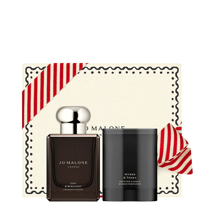 Пленителна комбинация от продукти за вашите близки и дома им, опаковани в подаръчна кутия, напомняща на джинджифилова коледна бисквитка. Ароматизирайте кожата си с мистериозния дървесен аромат на Oud & Bergamot от серията ни Cologne Intense и изпълнете всяко пространство с топлите и омайващи нотки на Myrrh & Tonka Travel Candle.