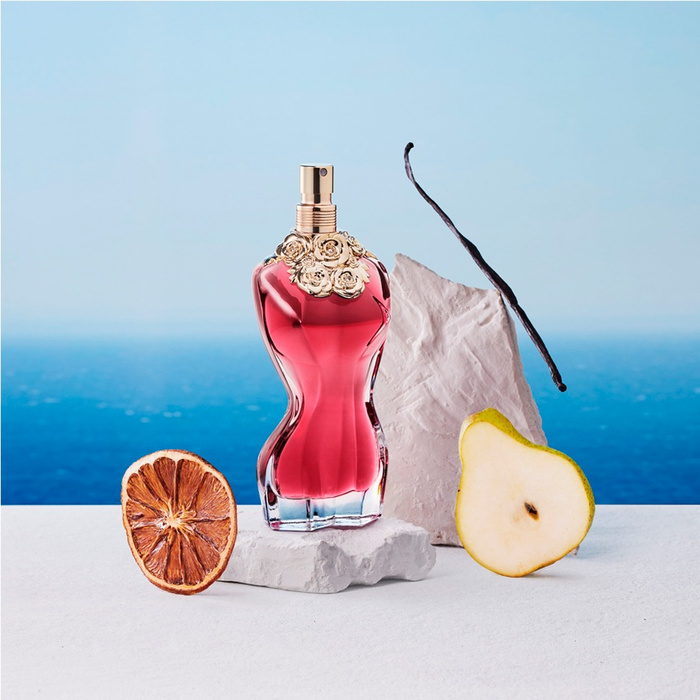 Олицетворение на първият мъж и първата жена, откриващи се в Градината на Gaultier. Jean Paul Gaultier отвори кутията на La Belle - ухае на ориенталска ванилия, но толкова свежа, сякаш погасява пожара в душата. Усещасе също ветивер, чудесният аромат на плодове и круша е явно изразен. След това Jean Paul Gaultier създаде флакона La Belle - и флаконът се появи. Във формата на женско тяло. Беше в червено в розово и говореше за благоприличие, както и за най-голямото сладострастие. Около врата, златни рози оформяха огърлица, скромно покритие, което служи само като покана за окончателно и изпълнено с изкушение разкриване ...Jean Paul Gaultier погледна към изисканите бюстове на Le Beau и La Belle и възкликна: - „Тези двамата бяха създадени, за да ни вкарат в изкушение!“. И те го направиха.
