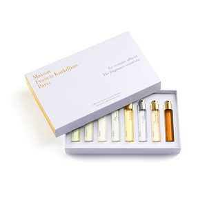 Цялостен ароматен гардероб в удобен за пътуване формат, който може да бъде подарен, споделен или притежаван: открийте многобройните лица на парфюмите на Maison Francis Kurkdjian, като всеки от тях съпътства една част от нас. Покана да разгледате различните изрази, този ароматен гардероб за мъже на Maison Francis Kurkdjian предлага изискана селекция от елегантни мъжки аромати. Този комплект парфюми се състои от осем 11 мл пълнители на парфюми, които ще ви позволят да откриете различните аспекти на ароматите на Maison Francis Kurkdjian: свежи и чисти Eau De Toilette, интензивни и жизнени Eau De Parfum, елегантни и урбанистични Extrait De Parfum. Този моден гардероб е перфектната идея за подарък, независимо дали го давате, или получавате. В този комплект ще откриете: Aqua Media Cologne Forte Eau De Parfum: Избухваща свежест с радостна и кисела следа, носеща жизнени тревисти цитрусови нотки. Amyris Homme Eau De Toilette: Свеж и дървесен, естествената и урбанистична елегантност на огнени двойки от амирис и ирис. 724 Eau De Parfum: Жизнената енергия на града, изразена чрез мускусно флорален аромат, улавящ усещането за чиста, енергизираща свежест. L’Homme À la Rose Eau De Parfum: Свежо, леко преразказване на розата с мъжествени нотки и флорално-дървесна следа. APOM Eau de parfum: Флорален, ароматен амбров аромат с чувствено сияеща и щедра следа. Gentle Fluidity Silver Eau de parfum: Индийско орехче и амброви дървета доминират, освобождавайки свежа и жизнена следа. Baccarat Rouge 540 Eau de parfum: Тайнствен, пристрастяващ аромат с сияеща, дървесно-амброво-флорална следа. Grand Soir Eau de parfum: Яркостта на великата вечер чрез жизнени и завладяващи амброви и дървесни нотки.