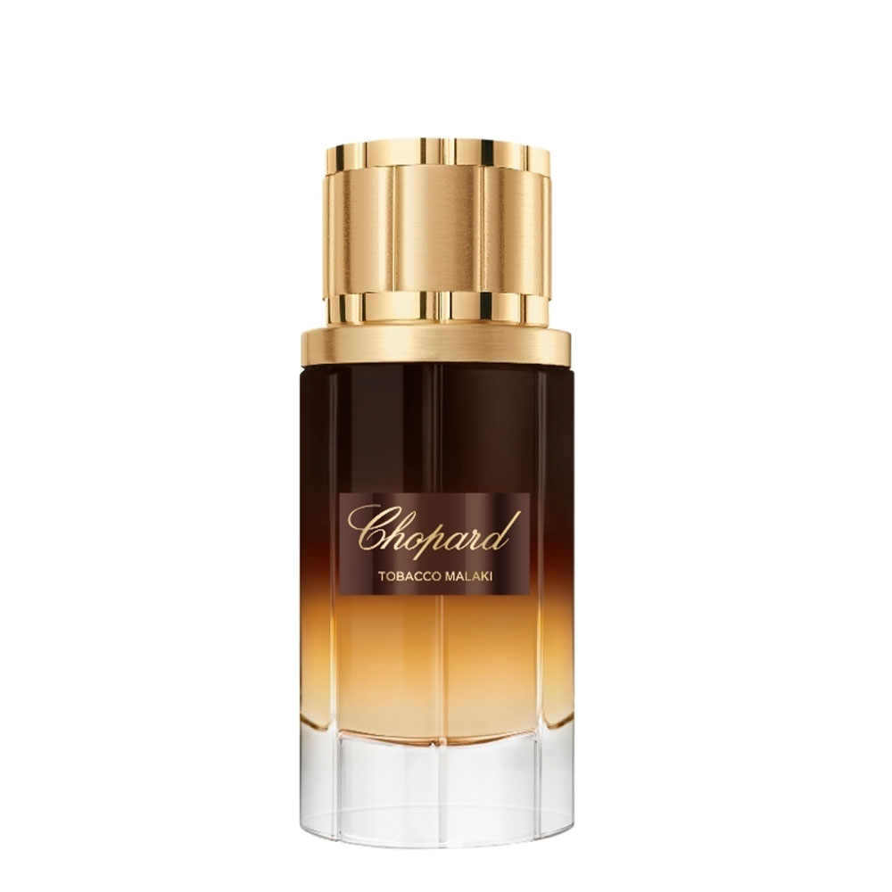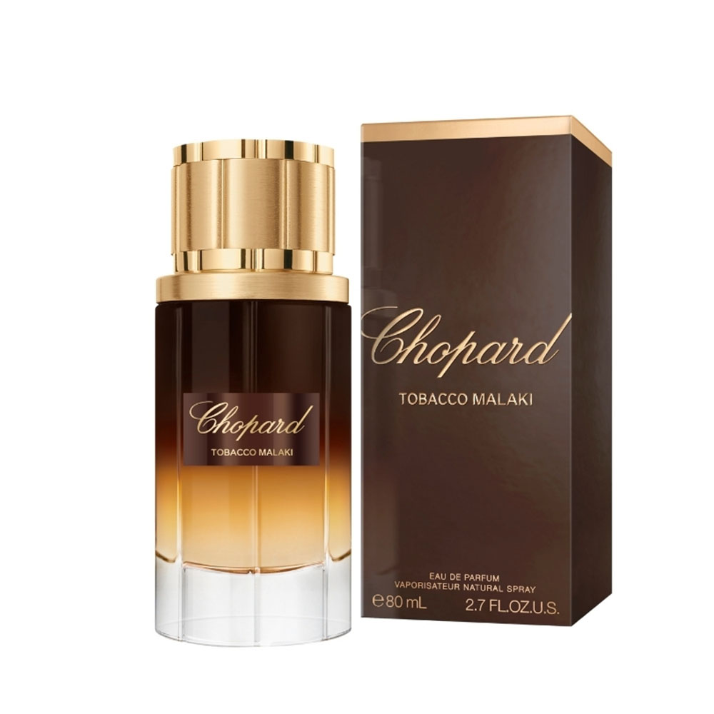 Колекцията Malaki на Chopard съчетава източни и западни ароматни традиции, за да създаде многопластови, уникални аромати, които улавят същността на този регион. Tobacco Malaki е потапяне в източното ароматно наследство. Този елегантен и мощен нов eau de parfum отдава почит на богатите аромати на тютюневия лист. В интензивна и завладяваща ароматна композиция, съчетаваща гурме топлина и мистериозни опушени нотки, той утвърждава ново измерение на мъжката чувственост. Ароматът се отваря със свеж бергамот, който електризира топлия, пикантен „червено-златен“ акорд – разкошен шафран, подсилен от силата на амброви нотки. Подсилен от дуо есенция от атласки кедър и уд акорд, тютюневият акорд разкрива своите гурме и ароматни нюанси в сърцето на композицията. Дървесната основа – едновременно успокояваща и дълбока – интензивно удължава следата чрез топлата комбинация от индонезийско пачули и гваяково дърво, обогатени с амбров абсолют от цистус лабданум. Tobacco Malaki е покана за сетивно ароматно пътешествие дълбоко в сърцето на източен град.
