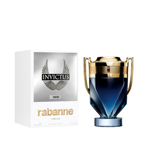 Издигнете се до величие и отприщете епичния герой в себе си с новия INVICTUS PARFUM от Rabanne. Улавя вашата вътрешна легенда и ви дава сила да покорявате божествени върхове. Смес от изключителни съставки, Invictus Parfum е мощен ароматичен, дървесен,акватичен аромат. Прясна лавандула се сблъсква с чувствен черен сапун и пристрастяващо сандалово дърво в обонятелен двубой за богове. Емблематичната бутилка INVICTUS идва с по-силен V-образен силует и златна капачка, за да направи път за по-мощен трофей от всякога. Invictus Parfum: аромат за полубог герой, който превръща живота си в легенда.