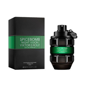 Spicebomb Night Vision Eau de Parfum от Viktor&Rolf е интензивен и съблазнителен аромат, вдъхновен от мистерията на нощта и контраста между светлина и тъмнина. Ароматът се разгръща с ярка и енергична свежест, която бързо преминава в дълбока, тъмна дървесна чувственост, създаваща усещане за сила, увереност и интензитет. Баланс между пикантност, свежест и дълбочина, Spicebomb Night Vision EDP е израз„ на мъжественост в модерен, изтънчен прочит. Парфюмът е създаден за мъже, които излъчват магнетизъм и не се страхуват да бъдат забелязани. Флаконът в емблематичната форма на граната, в изцяло черно стъкло с ярка зелена ивица, символизира нощното виждане и електризиращото присъствие на аромата.