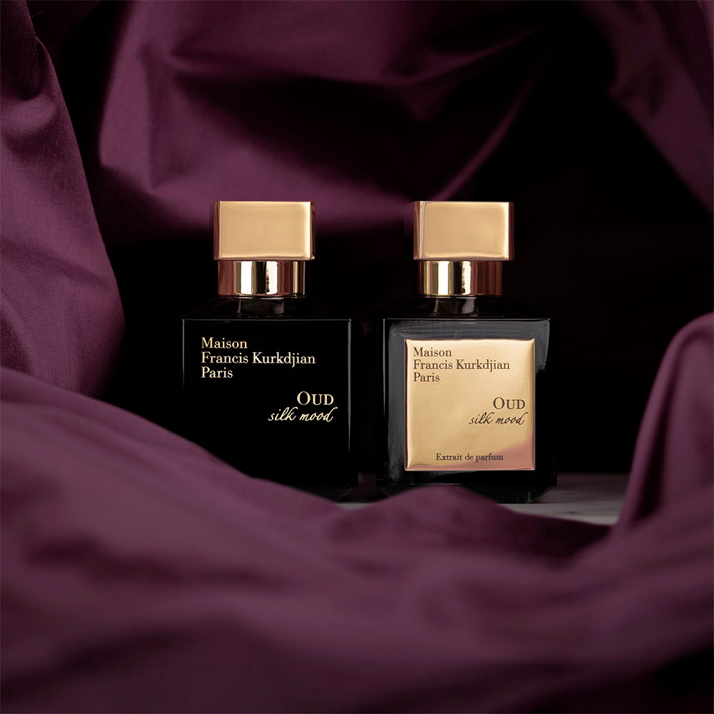 OUD Silk Mood Maison Francis Kurkdjian Extrait De Parfum преоткрива копринения и обгръщащ аромат с изключителна интензивност. Този дървесно-флорален парфюм пресъздава нежното шумолене на коприна с усещане за розови листенца. Обгърнат от роза абсолю, папирус и синя лайка, удът се разгръща леко и елегантно. OUD Silk Mood Extrait De Parfum е ефирен и чувствен аромат.