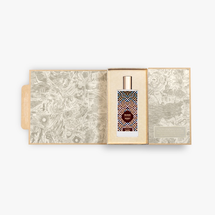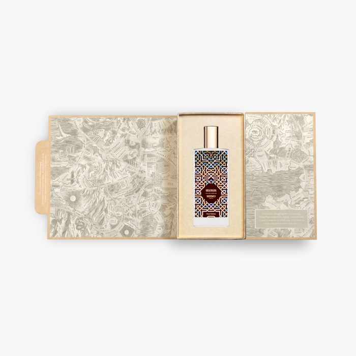 СПОМЕНТЪТ: Полунощ в градините на Алхамбра, червеният замък. Скитащият се бриз напомня за любовта. Под развяващите се струи на фонтаните, тихи като вкаменения мрамор, със затворени очи, протегнати ръце: сънувам твоя парфюм. Rock-me, песен на жасмин, вземи ме в ръцете си, мой портокалов цвят. Колко е тъмно, дървото на вашите китари. Те плачат на лунна светлина. Какви тъмни коси имат вашите ромки. Полите им карат сърцето ми да се върти. Чуй гласа ми, който те вика. Гранада, тази вечер ще ти бъда верен. Твоето небе е над моята земя, моята единствена светлина. КОЛЕКЦИЯТА FLEURS BOHEMES: Цветето е върховната муза на парфюмеристите, тяхната героиня, тяхната най-смела сбъдната мечта в безкрайни вариации. Неговата уникална красота, изцяло съдържаща се в сложната структура на венчелистчето, извивката на венче, играта на цветови нюанси, силната стойка на плодника, ни отвежда до желаните, главозамайващи висини на неговия богат и деликатен аромат. Memo Paris посвещава цяла колекция на цветето, подобно на прашеца, който съдържа, е пометен от вятъра и изобилие от творчески желания. Нейно величество розата, разбира се. Османтус, жасмин, тубероза и други цветя, също са богини на творенията на Memo Paris, пропити композициите със своето слънчево очарование и дълбоко вкоренен чар. Флоралните подписи на колекцията са маркирани от цвета на бутилката: бяло за леки и ефирни есенции; черно за семейства аромати с по-чувствен и обгръщащ характер.