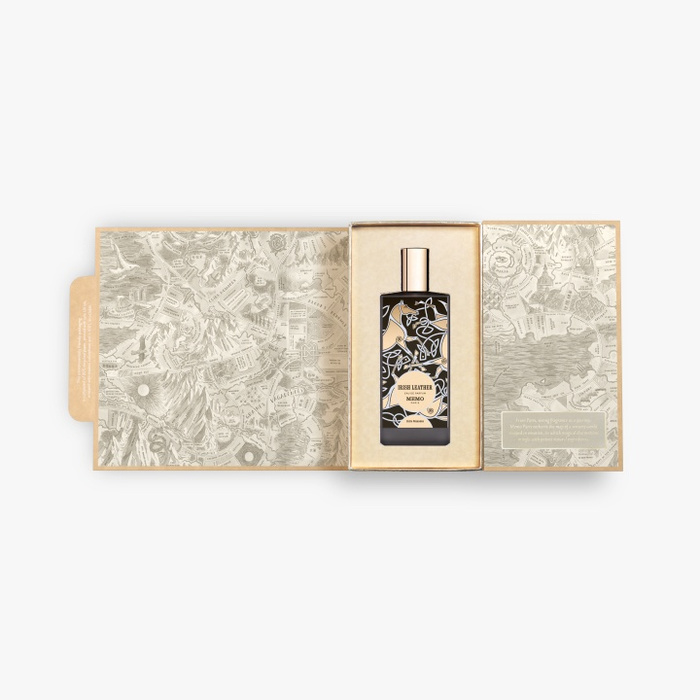 СПОМЕНЪТ:Една от онези ледени, хапещи сутрини. Розов пипер. Слънцето наднича през тежките сиви облаци. Масло от градински чай. Вятърът се плъзга под дрехите ти. Плодове от хвойна. Утринната роса накисва тревата. Най-накрая конюшната, дървените врати на стаята, горящият аромат на кожа, дърво, амбъри мед. Вековен аромат. Зелено мате абсолю. Тихото цвилене на коня. Масло от флув (трева). Мирис на свобода. Кожата се събира от вятъра, тревата се топли с дървото. Абсолю от зърна тонка. Irish Leather препуска в галоп към хоризонта. КОЛЕКЦИЯТА CUIRS NOMADES: Ароматът на кожа не е ли номадски? Най-добрият приятел за пътуване, верен спътник на пътешествениците, любопитните умове и авантюристите, тръгнали да откриват света, е кожена чанта, техният единствен свидетел. Като намигване, Memo Paris създаде колекция от аромати, където коженият акорд се разкрива по различен начин, в зависимост от срещаните пейзажи и техния индивидуален характер.