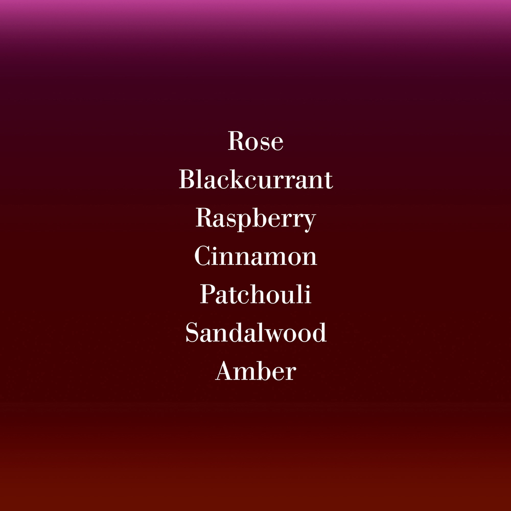 На преден план, пищна доза турска роза - 400 цветя на бутилка от 100 ml, не по-малко. Върху легло от сърцевината на пачули, напоено със сандалово дърво и тамян. Акорд от карамфил, касис и малина обединява парфюма в характерен завършек.