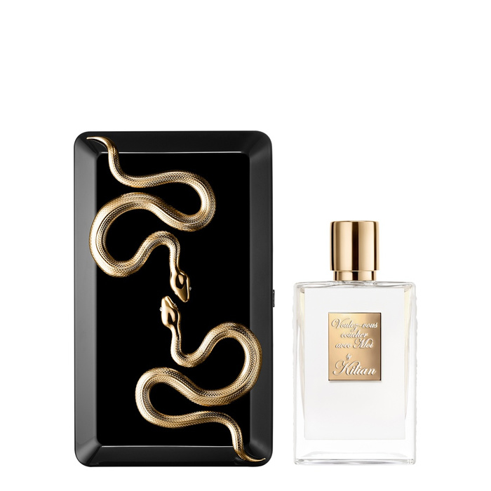 Всяка парфюмна бутилка на KILIAN PARIS се превръща в ценен предмет. Белият лакиран флакон е гравиран от различните му страни с керамична стенопис, представляваща Ахилесовият щит, и украсен със златиста плоча, върху която името на аромата е издълбано ръчно.
