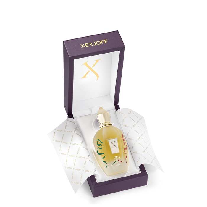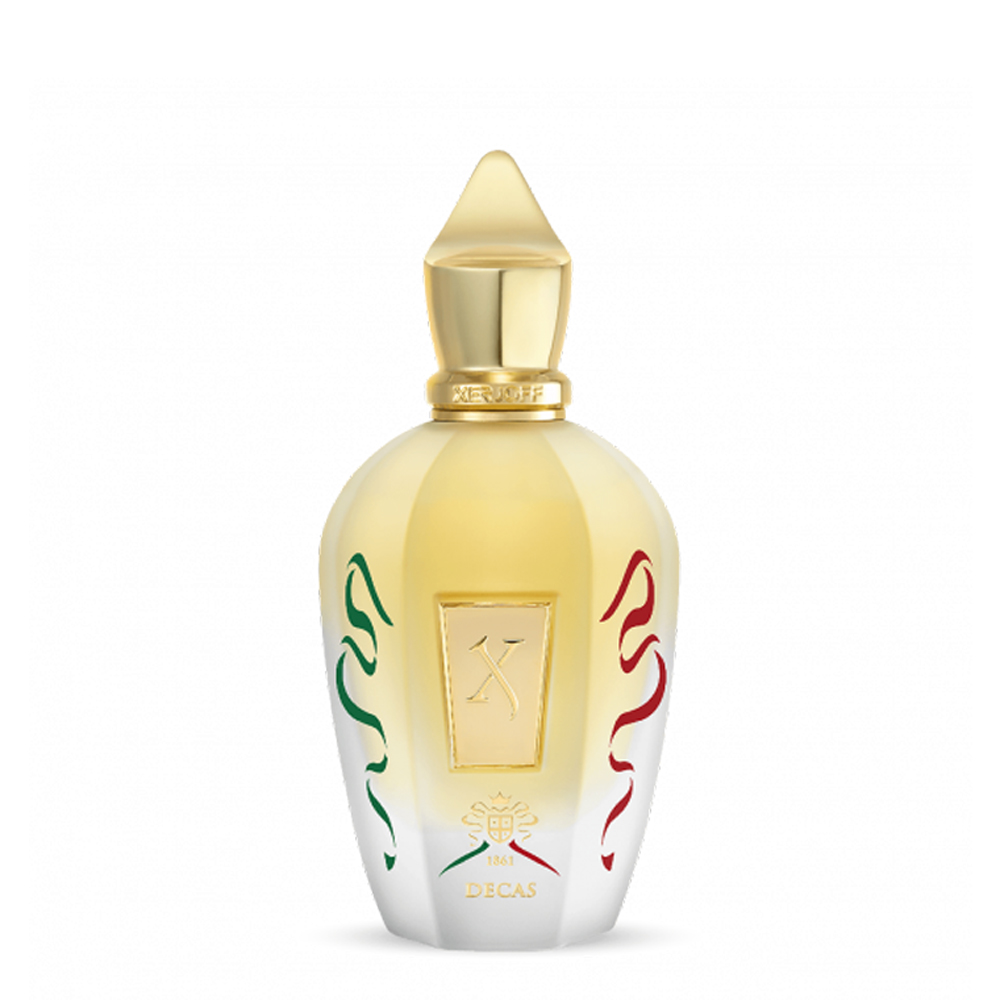DECAS отбелязва 10 години от създаването на първия парфюм в колекцията Xerjoff 1861 и създава вдъхновяващо настроение със свежите нотки на Kалабрийски мандаринa. Завладяващ и пищен аромат, чийто връхни нотки на тубероза и тютюн насочват сетивата към основните нотки на Италиански ирис и богат, церемониален бензоин, напомнящ на царствената атмосфера на историческа Италия. Димният, нежен опопанакс се затопля в сърцето на аромата, докато нотките на мускус, Толу балсам и ванилия осигуряват запомняща се основа на аромата.