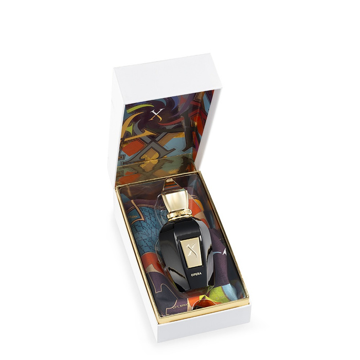 Екстравагантната красота на Opera трябва да се изживее, за да бъде повярвана. Връхните нотки на турска роза незабавно пленяват и водят до средните нотки на топла кожа и кехлибар са в сърцето, смесени с акорди на иланг-иланг и мускатен орех. Базовите нотки на пачули, ванилия и хаитянски ветивер добавят дълбочина, която не може да бъде пренебрегната. Opera се представя с уникален копринен шал за врата, проектиран от Xerjoff и произведен от известни производители на коприна ot езерото Комо.