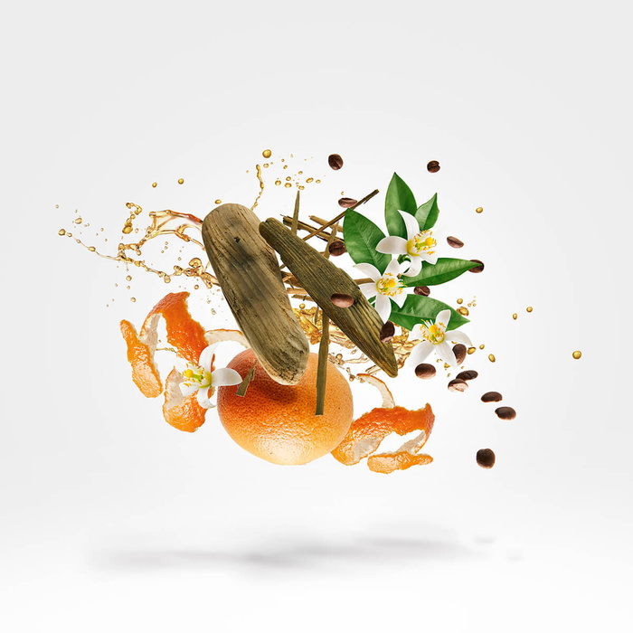 ЛИМОН, ГРЕЙПФРУТ,САНДАЛОВО ДЪРВО, РОЗА, АБСОЛЮ ОТ РОМ, МУСКУС, ДЪРВО ГУАЯК, АБСОЛЮ ОТ КАФЕ, АБСОЛЮ ВАНИЛИЯ