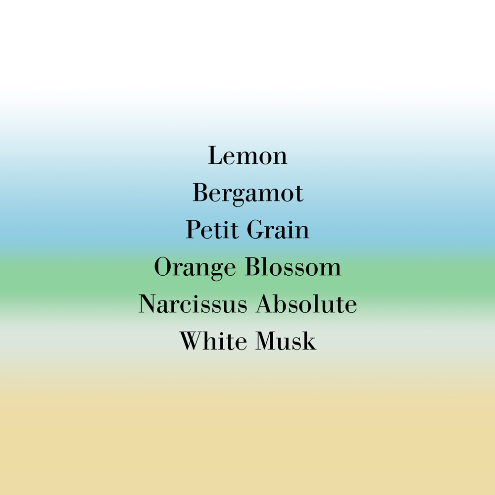 лимон, бергамот; портокалов цвят, нарцис абсолю, бял мускус