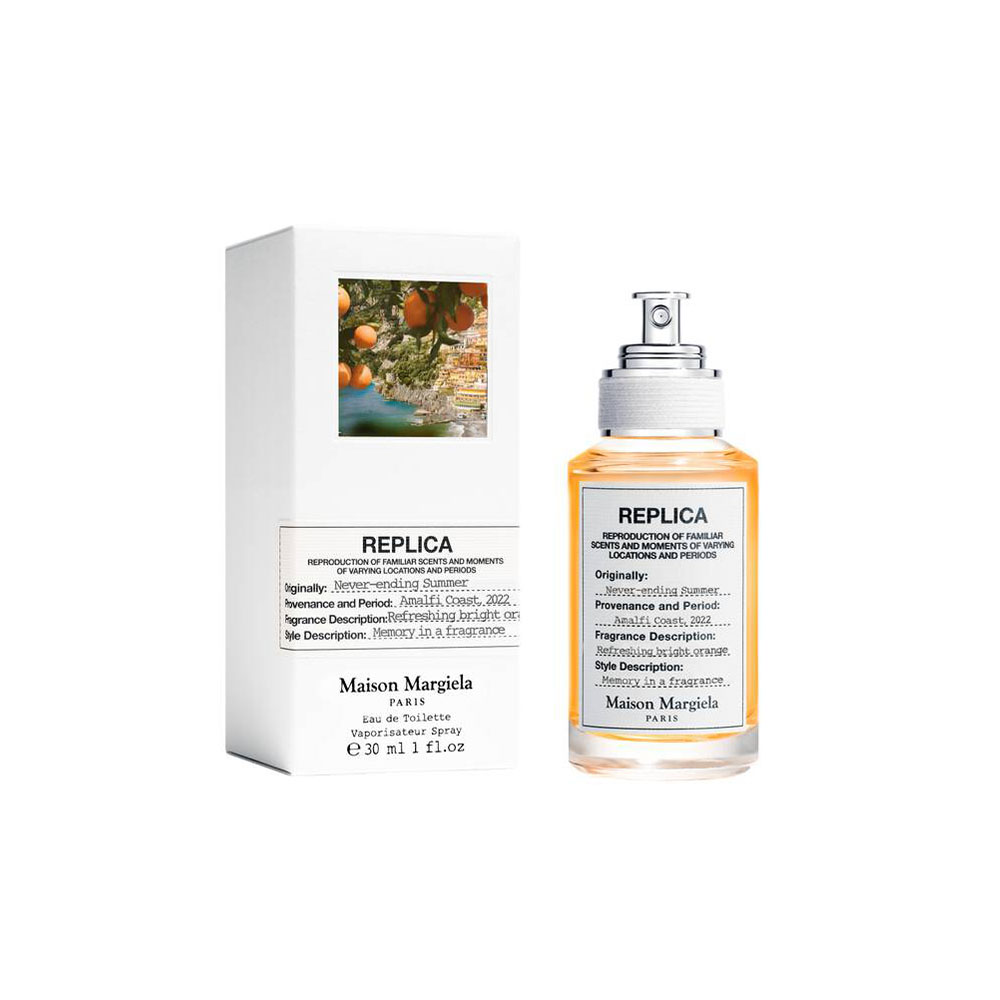 Аромат, който ви пренася в едно вечно лято на Амалфийското крайбрежие, улавяйки ободряващата същност на този регион – място, където времето забавя ход, а вие напълно се потапяте в красотата на момента. Never Еnding Summer е пикантен цитрусов аромат, вдъхновен от настроението на ярка, безкрайна лятна ваканция. Парфюмеристът Кристоф Рейно създава този аромат като ода на вечната италианска почивка – изпълнена със случайни срещи, спонтанни приключения и усещане за абсолютна свобода и индивидуалност. В освежаващите цитрусови нотки и неповторимия аромат на италиански шприц се крие споменът за безгрижни дни под слънцето. Never Еnding Summer е изтънчена ароматна композиция, която улавя атмосферата на незабравимо пътуване по крайбрежието на Италия. В сърцето на аромата е уникалният Italian Spritz акорд – ароматен подпис на Maison Margiela Fragrances. Този характерен коктейл е веднага разпознаваем със свежите и енергизиращи цитрусови нотки, които се преплитат с горчив портокал, носещ живо, искрящо усещане като на току-що обелена кора. А базовите нотки на ветивер внасят чувствена дълбочина и напомнят за земната, слънчева страна на Италия. Преживейте отново усещането за безкрайно италианско лято.