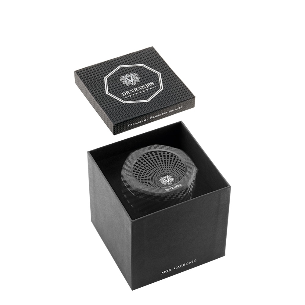Парфюмът за кола с покритие от карбон е изискан и оригинален аксесоар за вашия автомобил. Не само, че подобрява естетиката му, но и парфюмът се разпространява изцяло в колата ви, използвайки активната си вентилация и превръщайки всяко пътуване в незабравимо преживяване. Парфюмът за кола освежава въздуха и е за многократно зареждане: Отделението за пълнител е специално проектирано да се сменя лесно при консумация. Ароматните пълнители също се продават и отделно, което позволява да изберете различно зареждане на аромат, като същевременно запазите същия флакон. Парфюмът за кола се предлага в три изключителни покрития, използващи шест от най -популярните аромати на Dr. Vranjes в света.