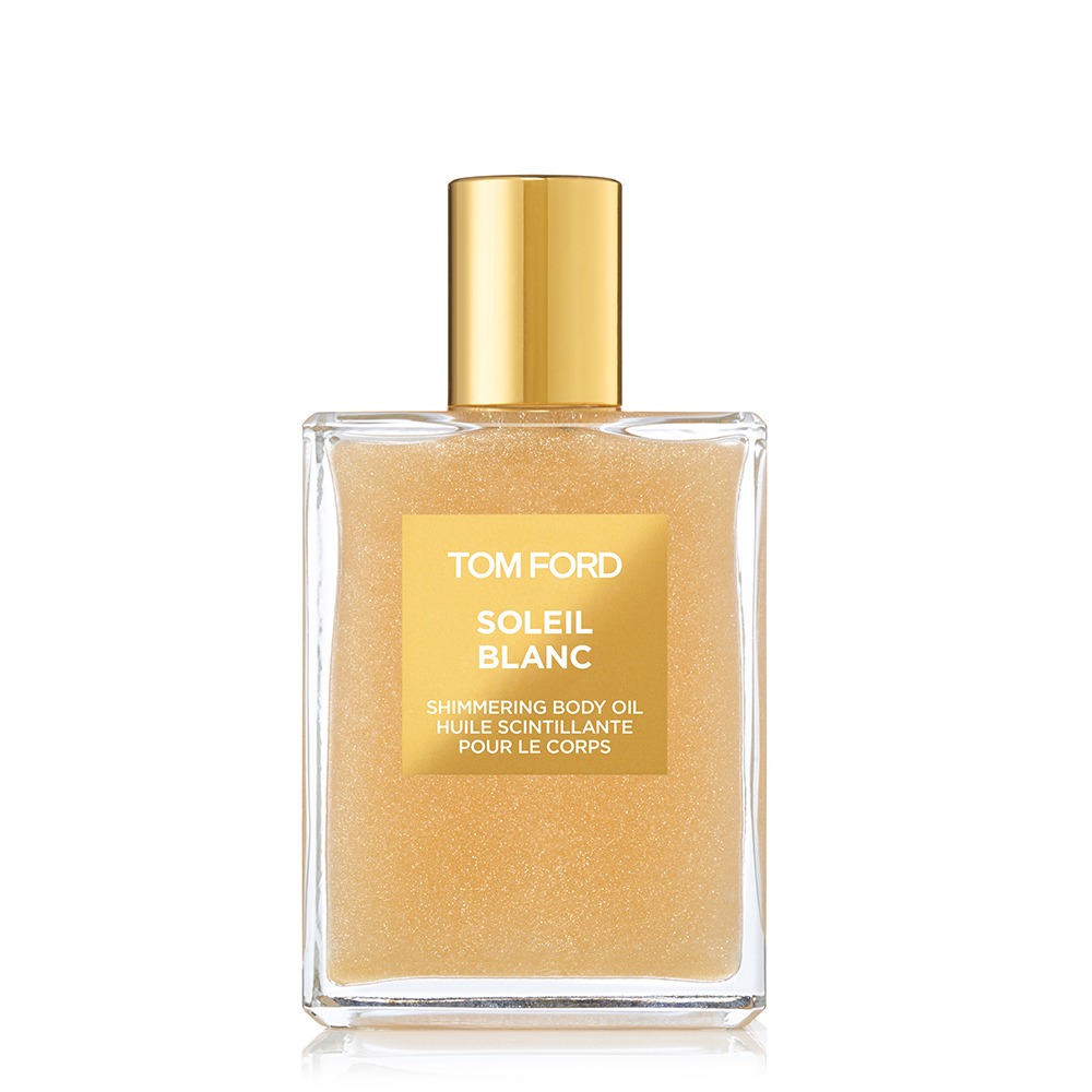 Tom Ford Shimmering Body Oil улавя съблазнителния ефект на целуната от слънцето кожа и привлича сетивата с аромат на гореща чувственост. Това копринено и леко олио озарява кожата със златисти и платинени частици. Завладяващият аромат обгръща в букет от бели цветя и златна кехлибарена прегръдка - изкусителен като плаж с бял пясък, неустоим като перфектен тен.
