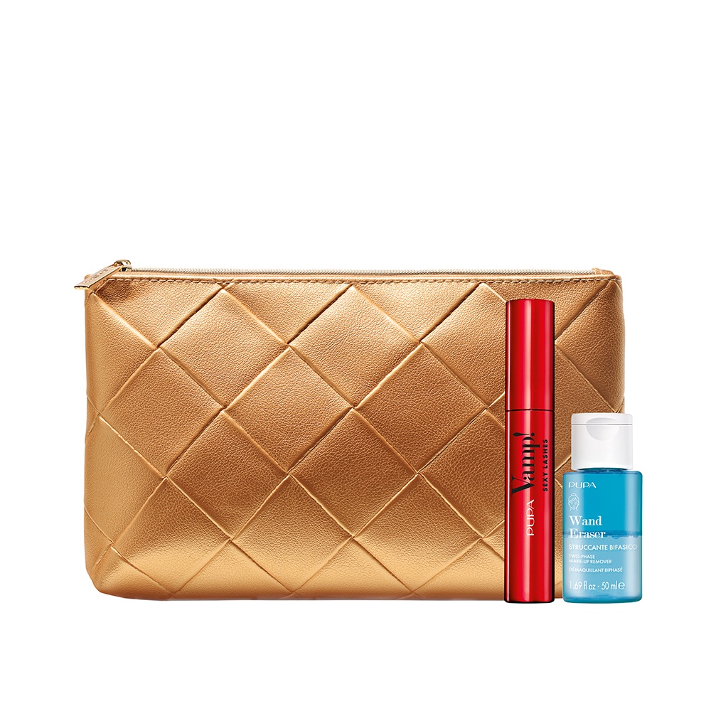 Vamp! Sexy Lahes 011 – Sexy Black. Придайте на миглите си изключително чувствен вид с Vamp! Sexy Lashes - неустоимо съблазнително оръжие за опасно секси очи. Обем, повдигане и извиване: миглите изглеждат подчертани от невероятните извивки и нов силует, противопоставящ се на гравитацията. Четката с макси влакна с извита форма осигурява обем и наситеност, а дългите влакна в основата извършват механично извиване. Миксът от естествени восъци: органичен пчелен восък и карнаубски восък, осигурява незабавен екстремен обем. Иновативният кросполимер «Lash Sculptor» подчертава извивката за ефект на извиване на миглите. Специалната филмообразуваща смола поддържа миглите перфектно повдигнати и извити за безупречна издръжливост. Високият процент допълнителни черни микропигменти гарантира интензивно и незабавно освобождаване на цвета още от първото нанасяне. Органичното масло от ший, с подхранващи свойства, обгръща миглите, без да ги утежнява, като ги поддържа еластични и гъвкави. Нисък риск от алергии. Офталмологично тестван. Подходящ за чувствителни очи и носещи контактни лещи. Без парабени. 12 мл. Wand Eraser – Special Size. Силно овлажняващият и деликатен биоферментирал екстракт от царевица прави двуфазния препарат за премахване на грим Wand Eraser невероятно нежен към кожата. Премахва ефективно и най-упорития и водоустойчив грим. Разклатете добре преди употреба, за да се смесят двете фази. Клинично и офталмологично тестван. Тестван за никел. Без парабени. Без животински производни. Размер: 50 мл. Включва козметичен несесер.