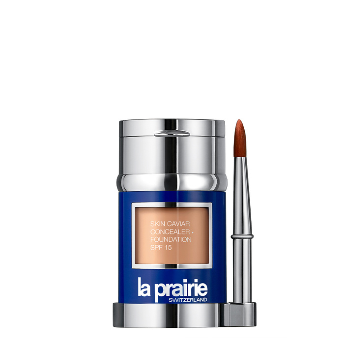 La Prairie Skin Caviar Foundation & Concealer е съвременна формула, съчетаваща усъвършенствана технология и прецизни пигменти за изравняване на тена. Свежа и копринена текстура „две в едно“ – фон дьо тен и коректор – осигурява високо покритие и естествено сияние. С всяко нанасяне кожата изглежда по-гладка, по-равномерна и усъвършенствана. С времето структурата ѝ се подобрява – хидратирана, стегната и еластична. Фон дьо тенът има кремообразна текстура с високо покритие, която при допир с кожата се превръща в лека, течна емулсия. Прелива се без усилие, създавайки безупречен завършек с деликатен блясък. Коректорът е прецизно съчетан с нюанса на фон дьо тена, за да прикрива тъмни кръгове и несъвършенства, като подчертава естествената красота на кожата. Основни ползи: 1. Единственият фон дьо тен и коректор с хайвер, комбинирани в два продукта, за по-стегната и гладка кожа* и перфектен тен. 2. Фон дьо тенът осигурява дълготрайно пълно покритие*. 3. Несъвършенствата и тъмните кръгове са коригирани. 4. Цветът остава безупречен през целия ден. 5. Кожата е моментално хидратирана**. 6. Кожата изглежда безупречна, повдигната и по-стегната с течение на времето. *: регистрирано чрез клинично проучване след 8 седмици употреба, проведено с 45 участници. **: регистрирано чрез инструментално измерване след едно нанасяне, проведено с 45 участници.