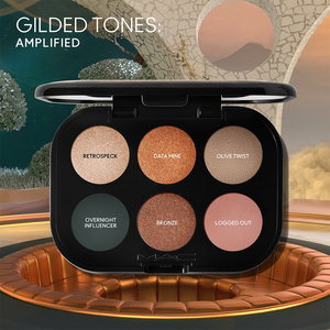 Златисти тонове: подсилени. Открийте своята вътрешна богиня с тази бронзова палитра с 6 цвята с иновация за чист и наситен пигмент с едно нанасяне за безброй ежедневни до луксозни визии. Този пейзаж от земно злато, маслина и кафяво съдържа леки, копринено нежни текстури с матов, блестящ и металически завършек. Първата ни по рода си формула сякаш се разтапя върху клепачите, като позволява безупречно нанасяне, надграждане и смесване, за да персонализирате визията си по вашия начин. Най-пигментираните ни сенки за очи към момента са формулирани с до 25% повече пигмент в сравнение с предишните палитри за очи на M·A·C. Освен това, тази артистична палитра е порталът към постоянно променяща се вселена от вдъхновение с QR за сканиране.