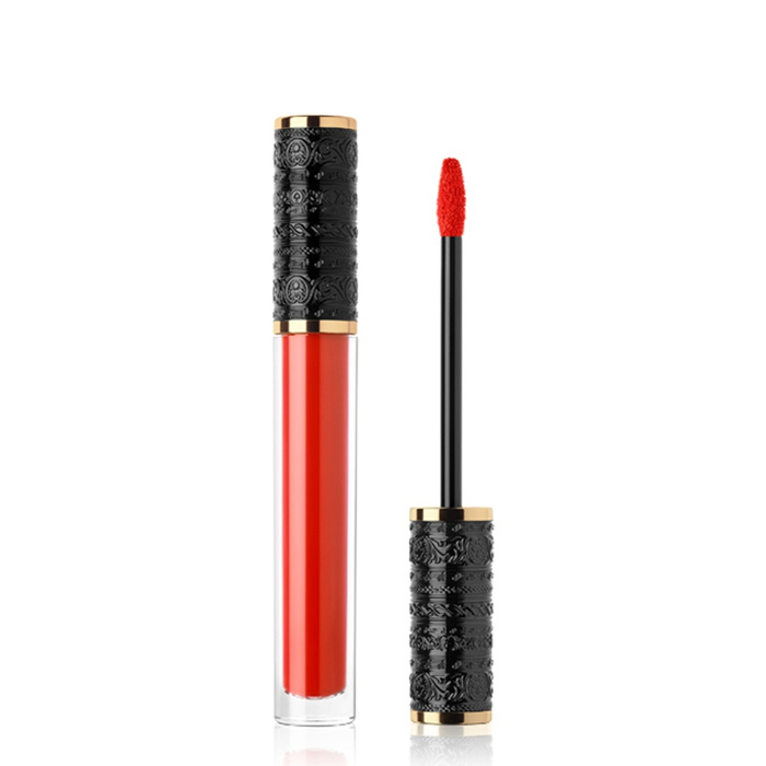 Оформен като тънък цилиндър, Le Rouge Parfum Liquid Ultra Matte се отличава с гравиран черен лак и златист апликатор върху елегантно тяло, разкриващи наситения цвят отвътре.