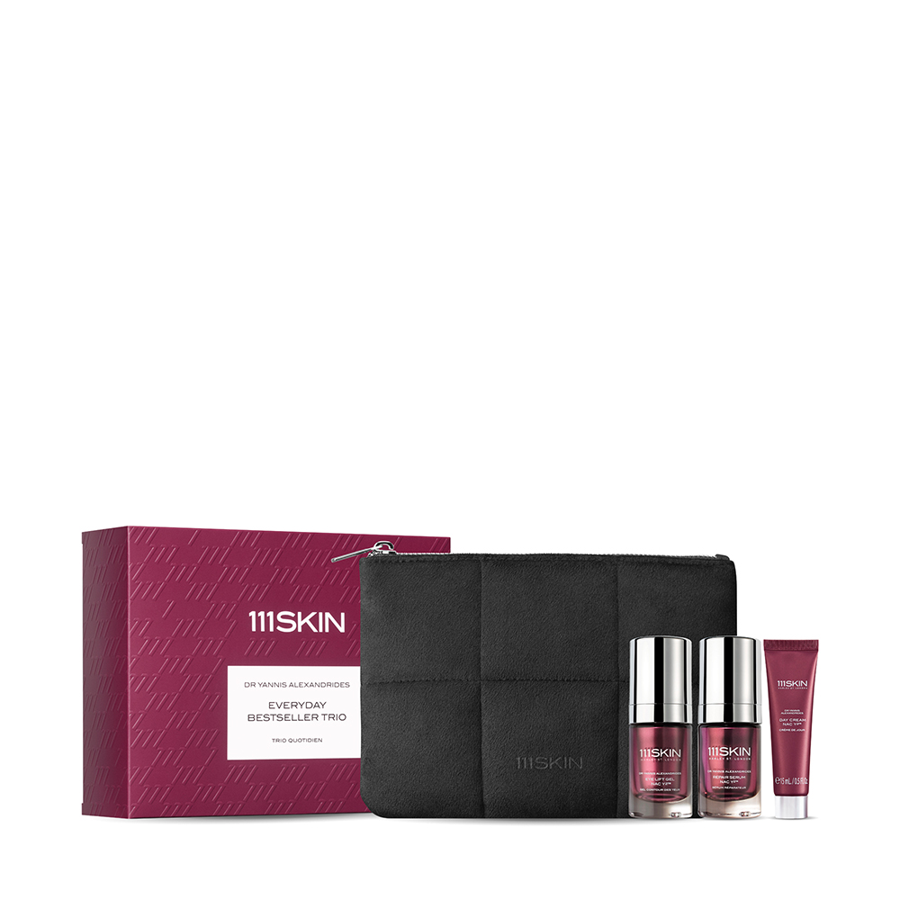 Кадифен несесер включващ задължителната ежедневна грижа за лице - серум, околоочен крем и дневен крем.