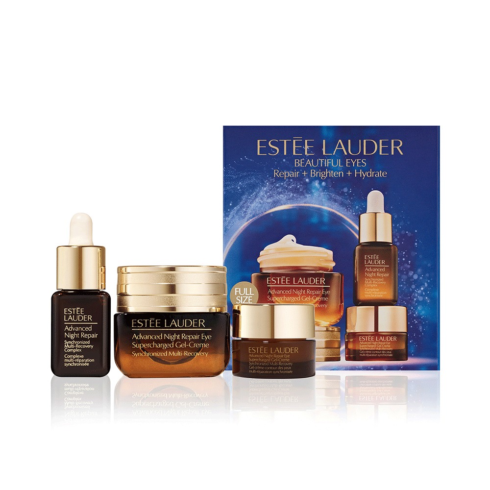 Луксозна колекция от 3 продукта, включваща пълен размер New Advanced Night Repair Eye Supercharged Gel-Creme, който значително намалява вида на линиите, бръчките, подпухването и тъмните кръгове.
