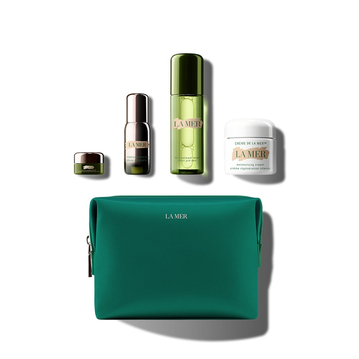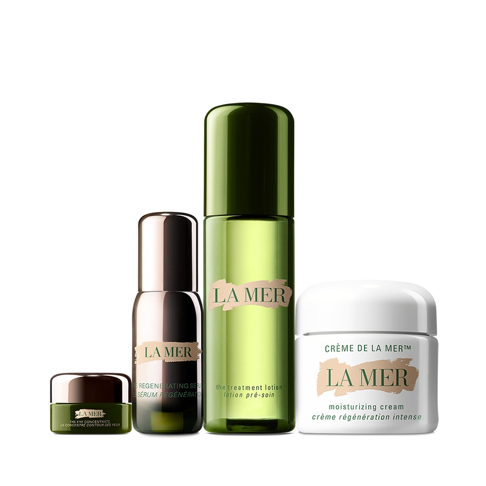 The Rejuvenating Rituals Collection е колекция от 4 продукта, спомоагащи за възстанвяване на кожата. The Treatment Lotion оптимизира вашия режим с хидратираща енергия, последвайте с The Regenerating Serum, който видимо намалява фините линии и бръчки, след което The Eye Concentrate изважда на показ по-озарен и гладък вид на околоочната зона. За финал нанесете Crème de la Mer подобрява тена с изпитана хидратация. Комплектът включва и козметична чантичка, която го прави готов за подарък. Комплектът включва: The Treatment Lotion 100 мл, The Regenerating Serum 13 мл, The Eye Concentrate 5 мл и Crème de la Mer 60 мл.
