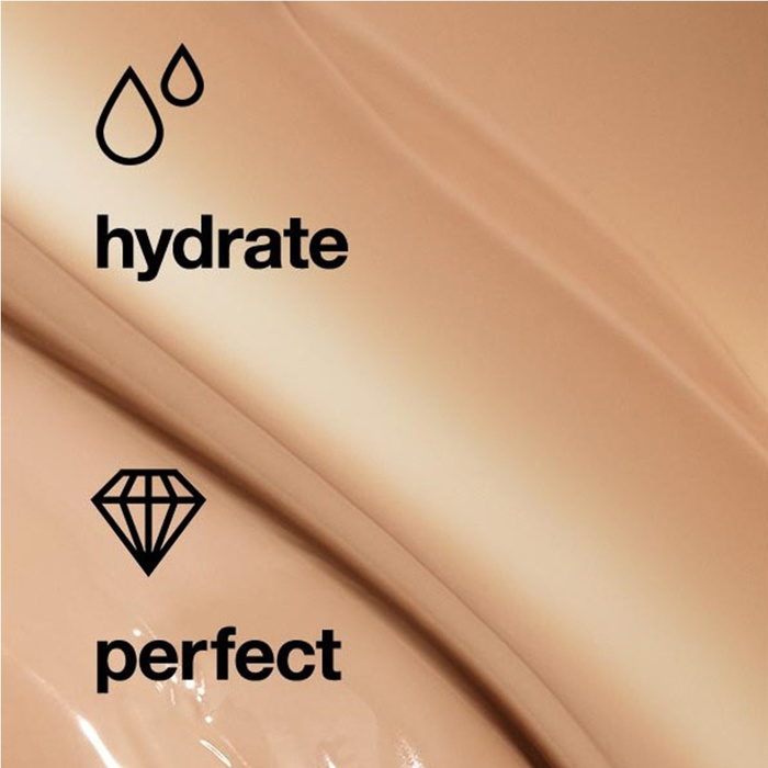 Мощни хидратиращи съставки, включително хиалуронова киселина и активирана вода от алое, поддържат кожата плътна и свежа в продължение на 12 часа. Лекият оттенък усъвършенства и покрива широк спектър от тонове на кожата. Формулата, устойчива на пот и влага, оставя кожата със свеж и естествен завършек през целия ден. Не съдържа масла. Благодарение на технологията Mimetic-Shade™ всеки изчистен, усъвършенстващ нюанс се слива безупречно с широк спектър от тонове на кожата. Хиалуронова киселина и активираната вода от алое поддържат кожата хидратирана в продължение на 12 часа. SPF и антиоксиданти предпазват кожата от вредното въздействие на UV лъчите, полени и замърсявания.