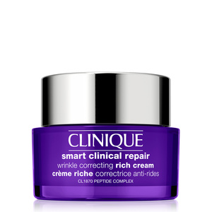 Мощно допълнение към нашата най-съвременна анти-ейдж линия, Clinique Smart Clinical Repair™, този ултра-подхранващ крем е проектиран да намалява видимо линиите и бръчките - за еластична, по-млада кожа. Формулата с CL1870 Peptide Complex™ спомага за естественото стимулиране на колаген в кожата и укрепва дермалната структура. Кожата се усеща по-силна и изглежда по-гладка. Изпълва кожата с трайна хидратация.