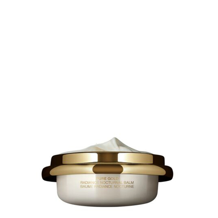 След почистване и тонизиране нанесете Pure Gold Radiance Concentrate и малко количество от Pure Gold Radiance Nocturnal Balm. Започнете да масажирате кожата.