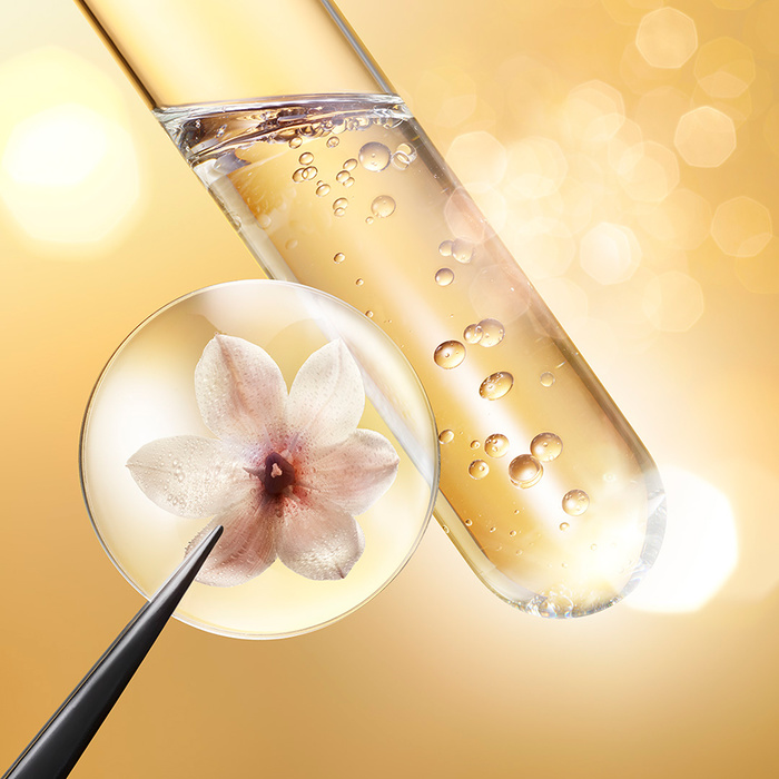 Въпреки лошата почва, излагането на UV лъчи и дълбоко замръзналата зима, това цвете регенерира всяка година. Когато дивите растения достигнат зрялост, техните стебла се оцветяват в пурпурен цвят, сигнализирайки, че събирането на ръка може да започне. Ние извличаме и използваме неговата ценна енергия за Re-Nutriv. Резултатът е нашият ексклузивен екстракт от хималайска тинтява с концентрирана "молекула на оцеляването" и сила да повиши естествения протеин, който е жизненоважен за кожната структура.