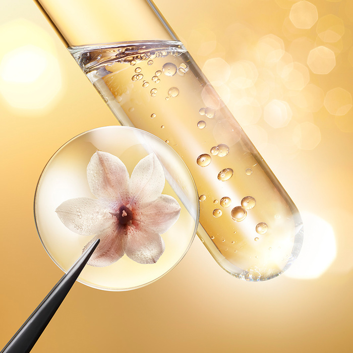 Въпреки лошата почва, излагането на UV лъчи и дълбоко замръзналата зима, това цвете регенерира всяка година. Когато дивите растения достигнат зрялост, техните стебла се оцветяват в пурпурен цвят, сигнализирайки, че събирането на ръка може да започне. Ние извличаме и използваме неговата ценна енергия за Re-Nutriv. Резултатът е нашият ексклузивен екстракт от хималайска тинтява с концентрирана "молекула на оцеляването" и сила да повиши естествения протеин, който е жизненоважен за кожната структура.