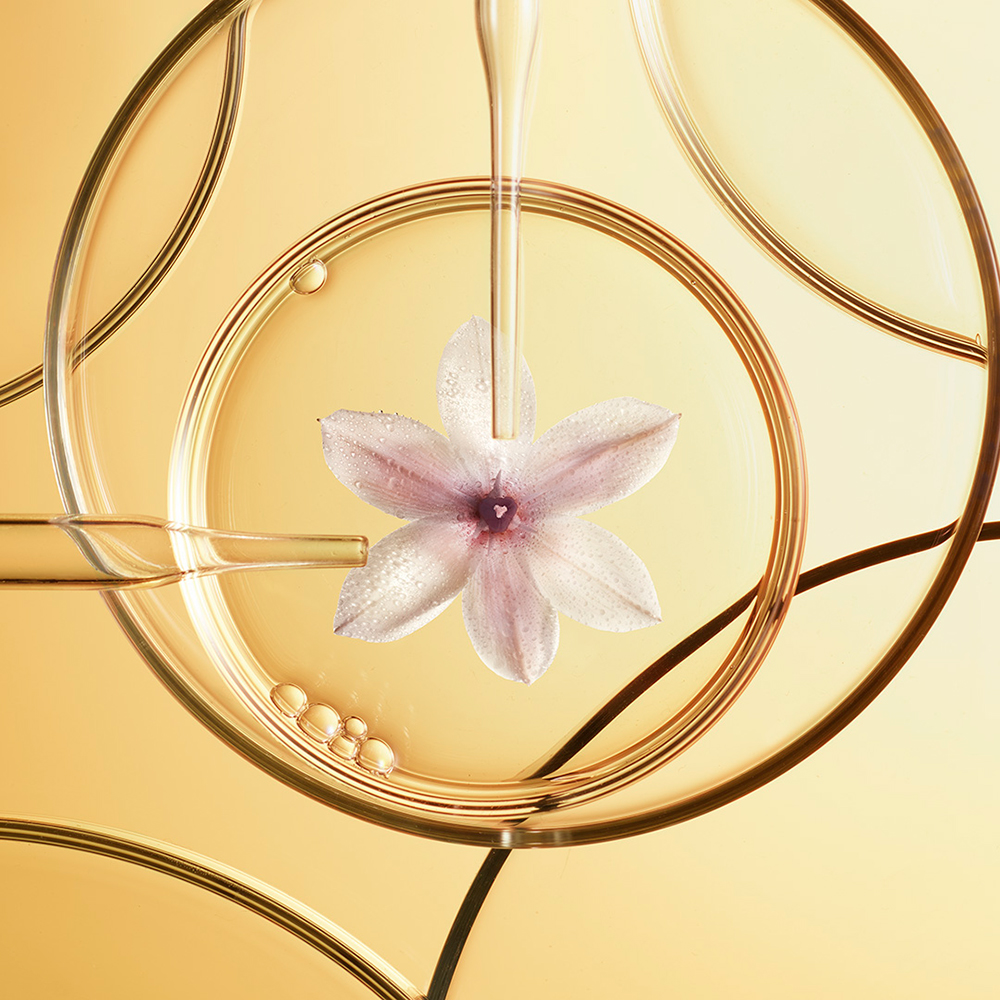 Въпреки лошата почва, излагането на UV лъчи и дълбоко замръзналата зима, това цвете регенерира всяка година. Когато дивите растения достигнат зрялост, техните стебла се оцветяват в пурпурен цвят, сигнализирайки, че събирането на ръка може да започне. Ние извличаме и използваме неговата ценна енергия за Re-Nutriv. Резултатът е нашият ексклузивен екстракт от хималайска тинтява с концентрирана "молекула на оцеляването" и сила да повиши естествения протеин, който е жизненоважен за кожната структура.