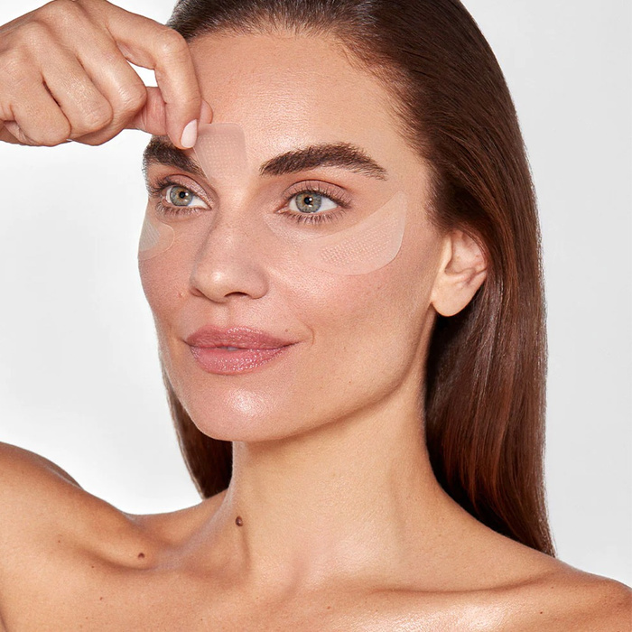 Стъпка 2: Внимателно потупайте всеки пластир на място и продължете с обичайната си рутинна грижа за кожата, като се уверите, че нито един продукт не докосва пластирите.