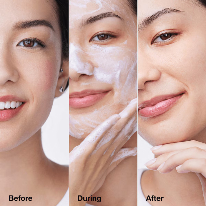 Копринената почистваща пяна, която премахва грим, слънцезащита, излишен себум и други замърсявания.