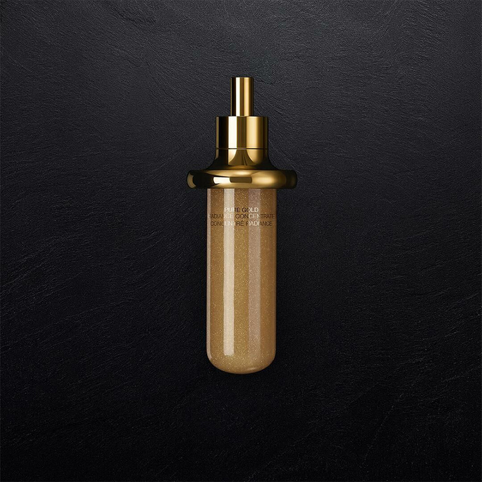 Колекцията Pure Gold е формулирана за нуждите на девитализирана, деликатна кожа – матова кожа, която е крехка, тънка, уязвима към сухота и по-малко възприемчива към хранителни вещества, което води до забавени процеси на обновяване. Научната платформа Pure Gold осигурява продължителна доставка на ключови възстановяващи активни съставки, за да компенсира тази загуба на възприемчивост, осигурявайки незабавно и дълготрайно излъчване. Поставете пълнителя в оригиналното бурканче на Pure Gold Radiance Concentrate.