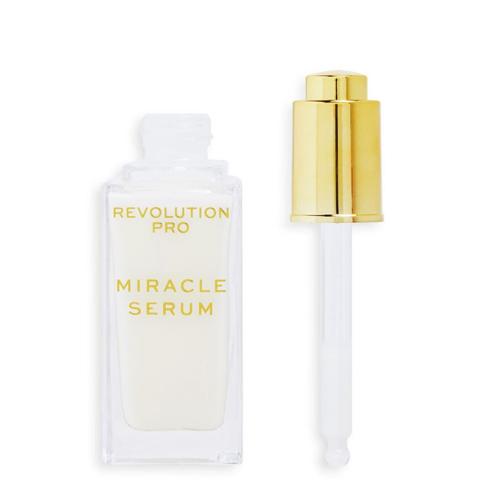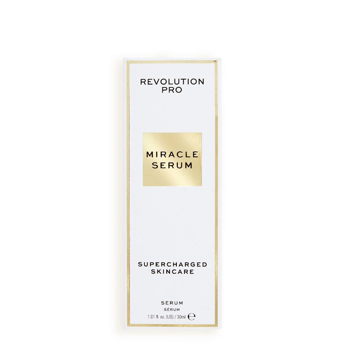 Чудотворният серум за моментално сияйна кожа! Запознайте се с Revolution Pro Miracle Serum – мощен серум за лице, вдъхновен от нашия #1 най-продаван крем Revolution PRO Miracle Cream. Този свръхзареден серум за грижа за лицето МОМЕНТАЛНО хидратира кожата от първата употреба и зарежда отново с енергия основата ви за по-гладка, плътна и по-млада кожа. Напоен с великолепно фин аромат на РОЗА. Пълен със съставки, обичащи кожата: Ниацинамид – помага за намаляване на безжизнеността и подобряване на неравномерния тен на кожата; Витамин С – помага за озаряване на кожата за естествено излъчване; Хиалуронова киселина – поддържа кожата хидратирана;Полиглутаминова киселина – помага за поддържане на кожата стегната и плътна; Какво го прави Miracle Serum? Изпробван и тестван върху нашите потребители, този невероятен балсам има доказани резултати: *92% са съгласни, че кожата се чувства МОМЕНТАЛНО хидратирана. *70% са съгласни, че кожата мигновено се чувства по-СИЯЙНА и ЗДРАВА. *84% са съгласни, че текстурата на кожата изглежда ПО-ГЛАДКА. *83% са съгласни след 4 седмици кожата се чувства ПОДМЛАДЕНА. След 4 седмици кожата изглежда ПО-МЛАДА и по-СТЪГНАТА. Открийте ЗАДЪЛЖИТЕЛНИТЕ продукти за вашата красота и режим на кожата с гамата Revolution PRO Miracle.