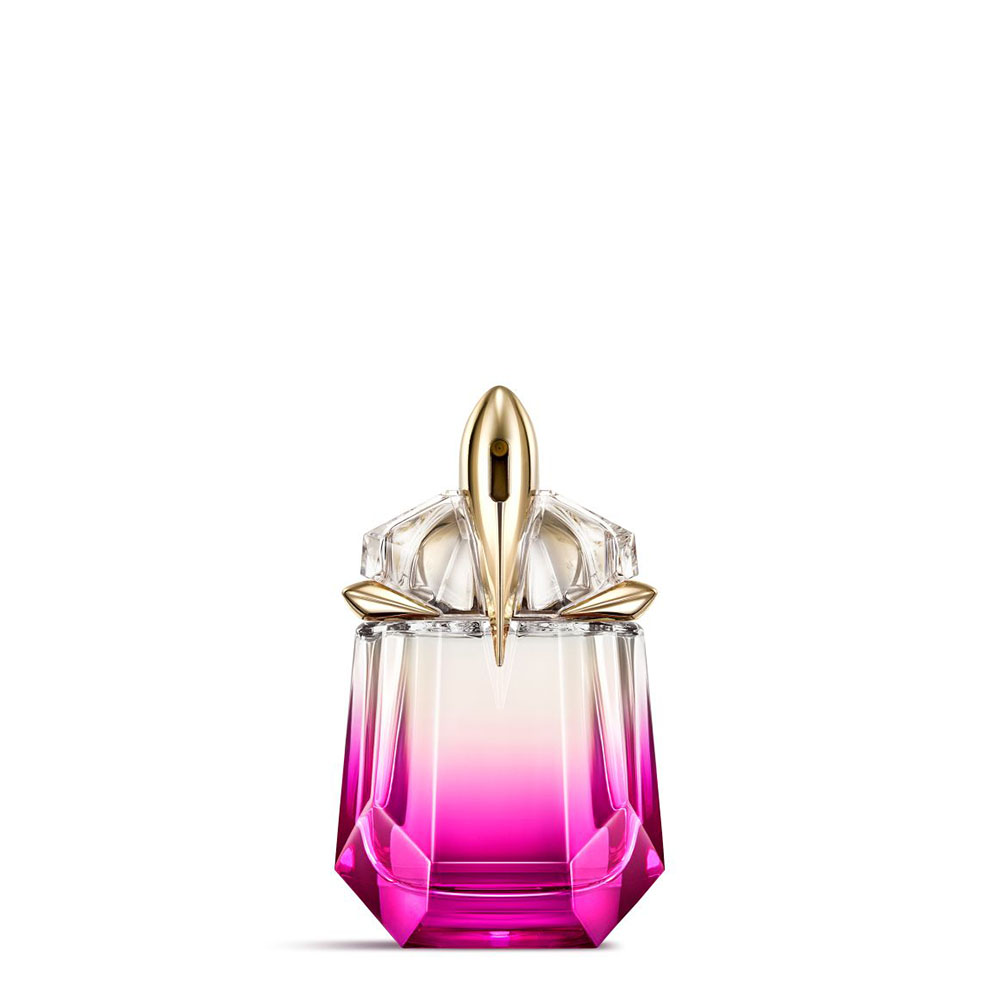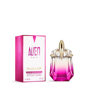 Флаконът на Alien Pulp, изваян като модерен талисман, сияе с омбре от сочно розово до кристално чисто, отразявайки вкусната, слънчева енергия на аромата. Създаден с възможност за многократно пълнене, всеки флакон може да се презарежда с пълнител от 100 мл, съчетавайки удоволствието с устойчивостта в концепцията на марката Mugler.