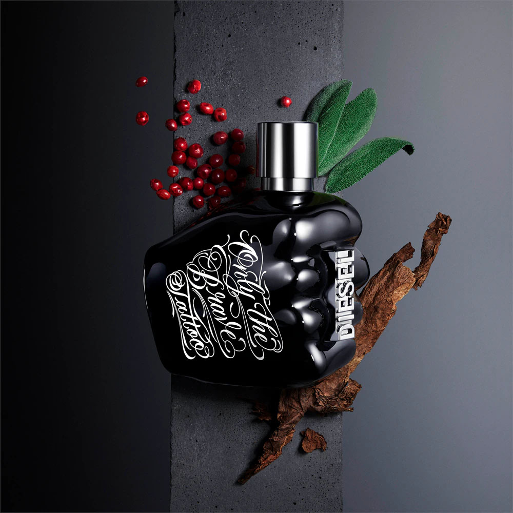 Only the Brave Tattoo е символ на бунтарския мъж – топъл аромат, който оставя трайно впечатление. Съблазнителна композиция от хрупкава ябълка, пикантен бурбон пипер и чувствен тютюн. Емблематичният флакон е облечен в черно и украсен с бяла татуировка – символ на мистериозния и бунтарски мъж, който се осмелява да изследва непознатото.