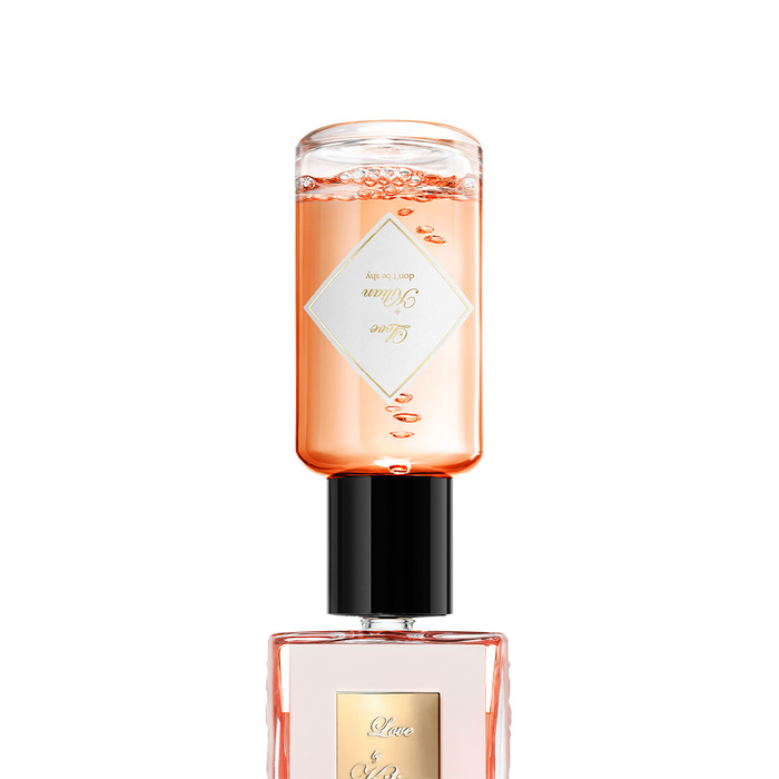 Вдъхновението: Вълнуващо, незабравимо, Love, don’t be shy, примамва с нежен портокалов цвят абсолю. Ароматна история: Невинността на първата любов се изявява със сочен цвят орлови нокти и елегантна роза, нежно погалени от сладостта на сочния акорд от бяла ружа, задоволяваща жаждата на новата любов. Топлата кехлибарена основа придава пулсиращо докосване на чувственост, намеквайки за възможността скоро да опознаете друга душа, отвътре и отвън. Основни нотки: Нероли, Портокалов цвят, Маршмелоу Обонятелно семейство: Наркотичните - От роза до тубероза, от портокалов цвят до гардения ... Цветята на Kilian са съставени като наркотична зависимост. Парфюмерист: Calice Becker. Вдъхновена от култовите гарафи за коняк, този флакон е създаден следвайки най-древните традиции за направата на стъкло. Дузина майстори са си представили този красив вечен предмет, украсен с възвишени линии и пленителен със своя блясък. Неговият силует се отличава с емблематичен K мотив, умножаващ се и безкрайно отразяващ светлината. Капачката, златиста топка от замак, внася сила и елегантност в парфюмната гарафа. За пълно парфюмно изживяване, безплатният пулверизатор придружава гарафата, което ви позволява да носите любимия си парфюм навсякъде със себе си. Луксът не трябва да е краткотраен, а да трае цял живот. Като такава, тази гарафа за парфюм е най-доброто средство.