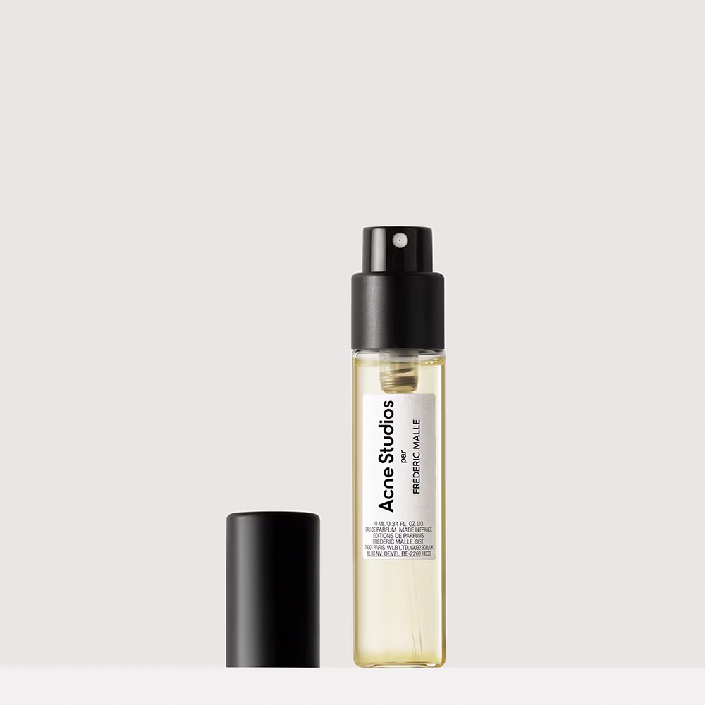 Acne Studios by Frédéric Malle Eau de Parfum е аромат със сияен, магнетичен и отличителен профил. Прилив от свежи алдехиди е обгърнат от нежната сладост на цветни нотки, праскова и ванилия, които са затоплени от сандалово дърво и бял мускус. С този аромат Frédéric Malle иска да улови и пресъздаде олфактивното отражение на отличителната естетика на Acne Studios. Той се обръща към младата надежда на парфюмерията - Suzy Le Helley, която да композира този величествен манифест.
