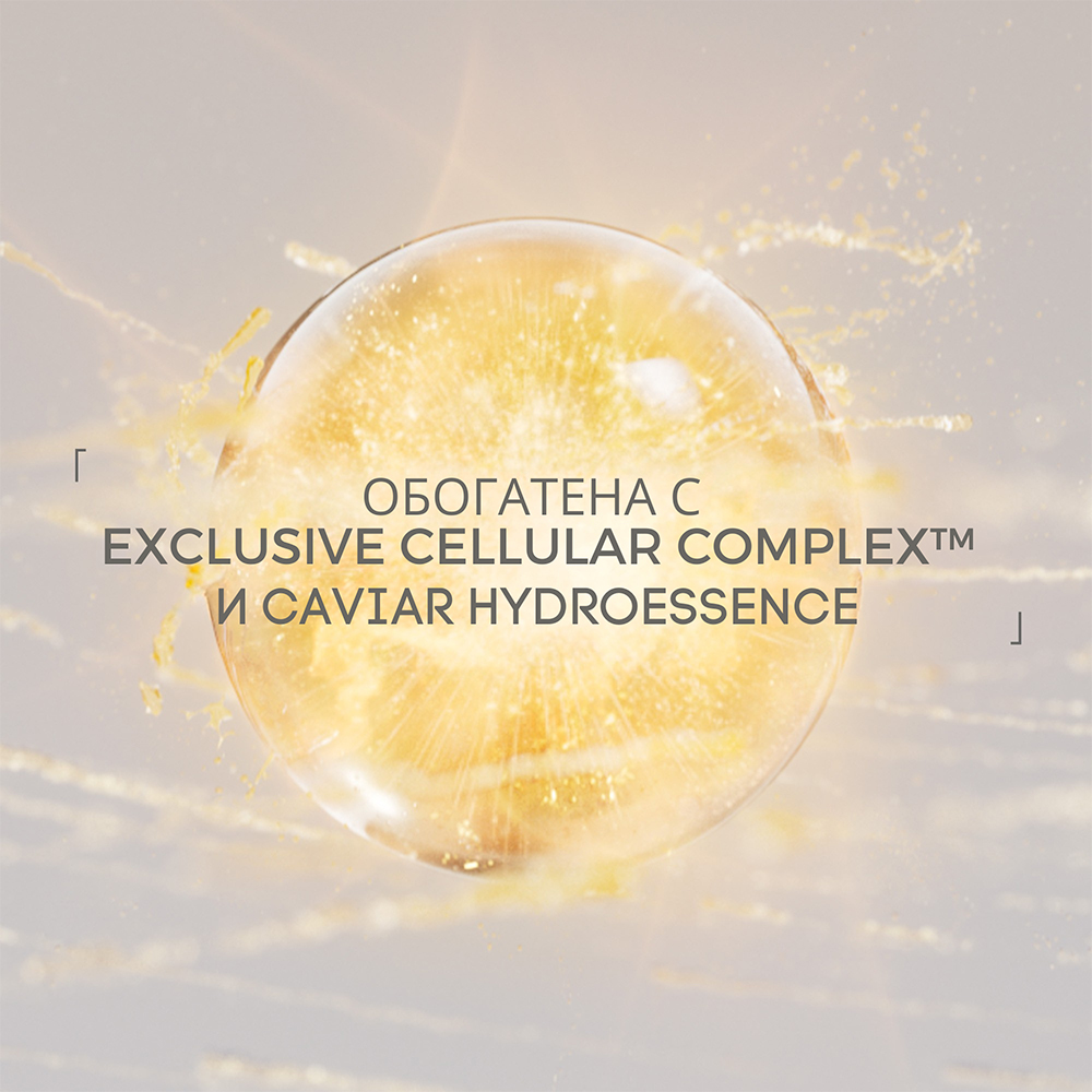 Обогатена с Ексклузивния Клетъчен Комплекс™, формулата стимулира и подсилва естествените възстановителни процеси на кожата. Caviar Micro-Nutrients активират основните енергийни пътища на клетките, подпомагайки метаболизма на кожата, докато Caviar Hydroessence, съставен от протеини от хайвер, укрепва и поддържа епидермалната структура. Резултатът е: