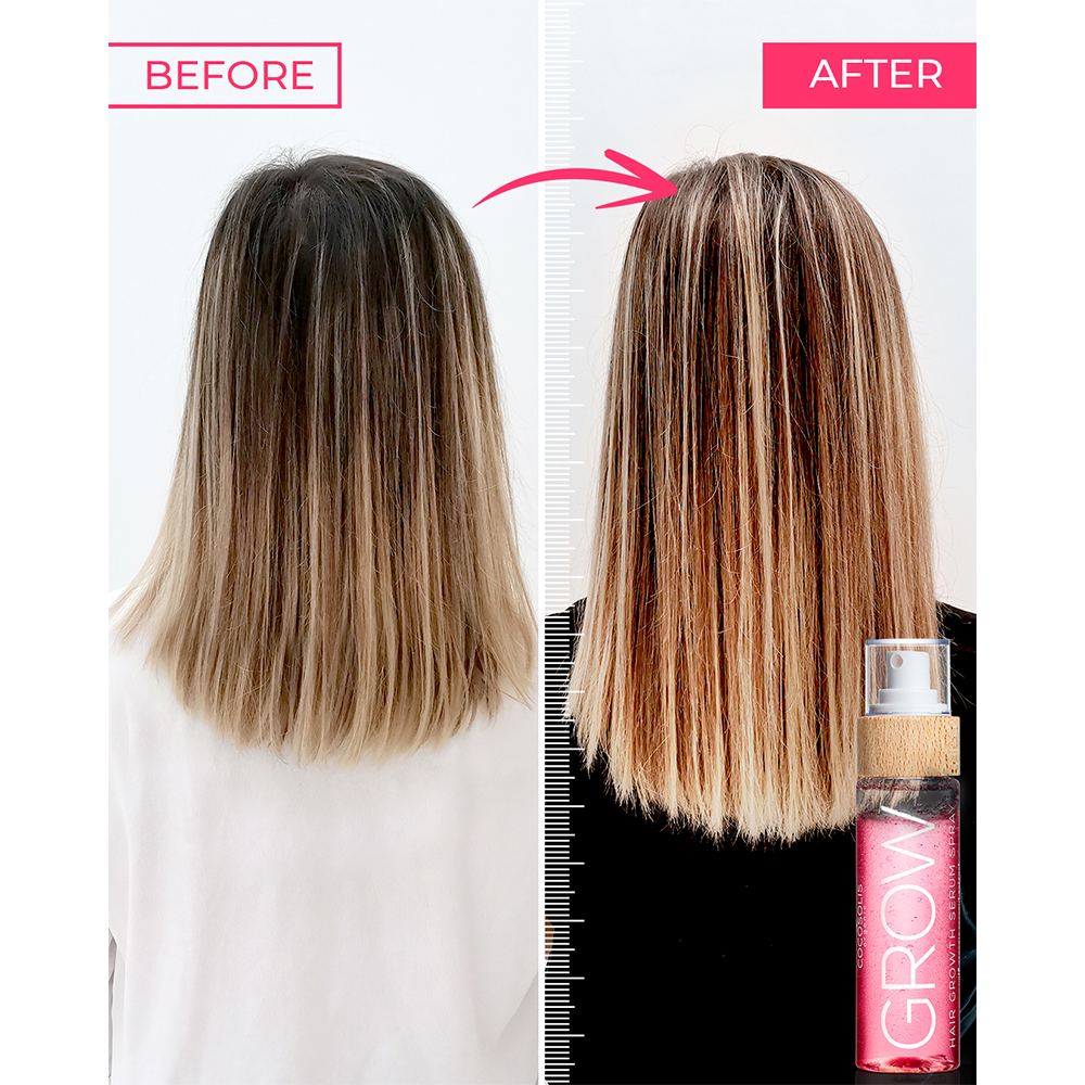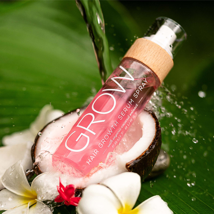 С освежаващо плодово ухание и лека текстура, спрей серумът GROW съчетава високо ефективни натурални съставки, за да преобрази косата, правейки я видимо по-гъста, силна и жизнена само след 3 седмици употреба. Намалява косопада, стимулира по-бързия растеж на косата, прави я по-гъста, жизнена и плътна. Подобрява структурата и блясъка на косъма, интензивно подхранва скалпа, удължава живота на косъма. Активира развитието на клетките на космените фоликули. Подходящ за всеки тип коса. Съдържа високо ефективна натурална съставка (извлечена от рукола, зелени орехи и зелено грозде) с лабораторно доказано действие. GROW е създаден по специално разработена формула с Витамини B3, B6 & провитамин B5, рициново масло и екстракт от Алое Вера за мощно комплексно действие. Осигурява интензивно подхранване и активация на космените фоликули, подсилване и заздравяване на косъма по цялата му дължина.