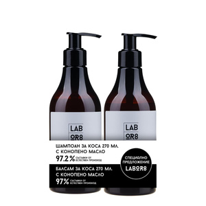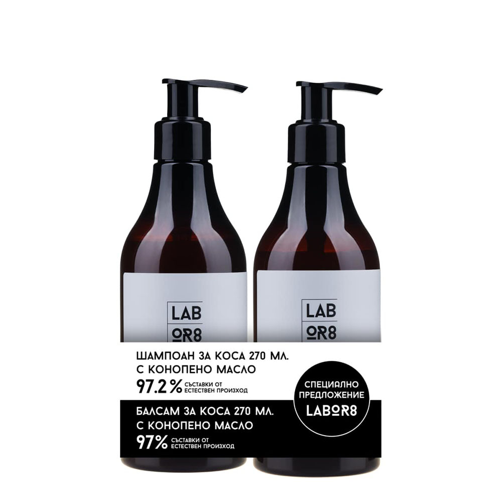 Шампоанът с конопено семе от Labor8 нежно почиства, хидратира и подхранва от корените до върховете. Придава блясък, мекота и жизненост, подходящ за всякакъв тип коса. Балсамът за коса с конопено семе от Labor8 подхранва и хидратира косата, улеснява разресването и придава копринена мекота и блясък. Подходящ за ежедневна грижа.