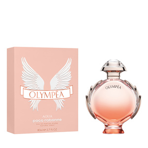 Съвременната муза - OLYMPEA AQUA. Божествената сила тук е свежа, но чувствена. Пристрастяващ свеж, слънчев аромат на вълни - морска сол и ванилия, със секси амбър и водни цветя.